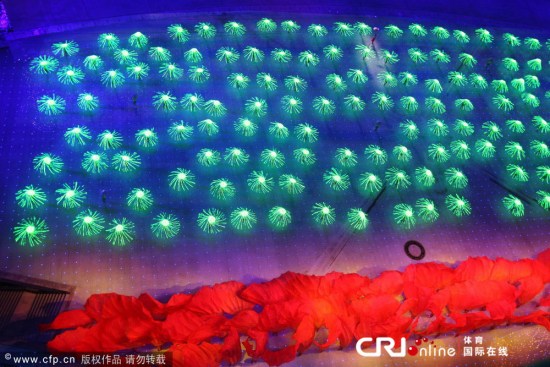 新浪体育讯 2010年11月8日,广州,2010亚运开幕式在海心沙岛进行了第四次综合彩排。图为开幕式彩排现场。