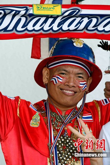 新浪体育讯 11月19日,亚运赛场天河体育中心内,多场比赛正在进行激烈角逐,阵阵喝彩助威声此起彼伏。来自泰国的助威团成为其中一个引人关注的热点。他们随身携带的道具极富异国情调。图为泰国助威团成员。