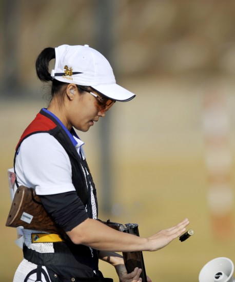 11月23日,泰国选手素迪耶-交差勒密在比赛中。当日,在第16届亚运会射击女子双向飞碟团体比赛中,泰国队获得季军。